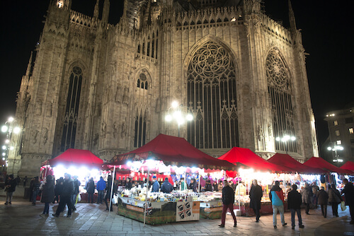 Merry Christmas and Happy New Year in FrenchItalians celebrate the festive season and Christmas with friends and family over several weeks starting in early December with markets and carol concerts until the day of Epiphany, on the 6th of January. Read more about Christmas in Italy here.