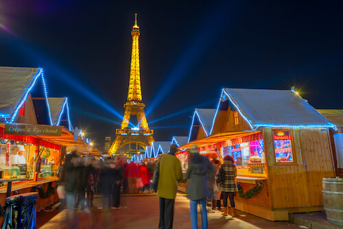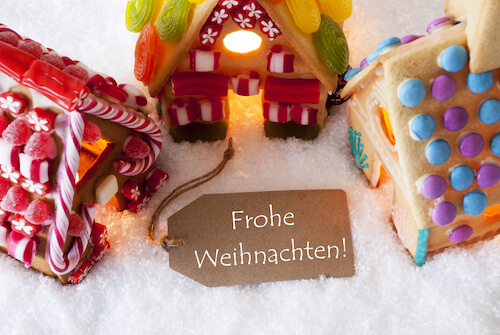 another way to wish Merry Christmas - here with typical German Gingerbread housesThere are some fantastic Christmas markets in France, foremost the festive stalls at the markets in Metz, Strasbourg and Colmar. Scenic Reims' sparkling decorations, the village de Noël in Lille and of course the Tuileries or Place Trocadéro in Paris are popular destinations for Christmas markets and some Christmas shopping as well.