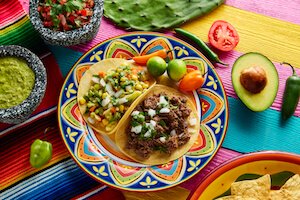 Tacos - Must-try Mexican food The typical Mexican tacos are made with soft corn tortillas and are filled with shredded meats, diced onions, tomatoes and a very spicy sauce. But there are many different tacos such as asador or al pastor, they are also made with shrimps or fish depending on the region. Read more here.