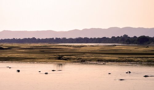 Hippo family at the waters edgeIn and near the Zambezi and Luangwa rivers, you will encounter many hippos and crocodiles, so going on a canoe safari is an exciting adventure!